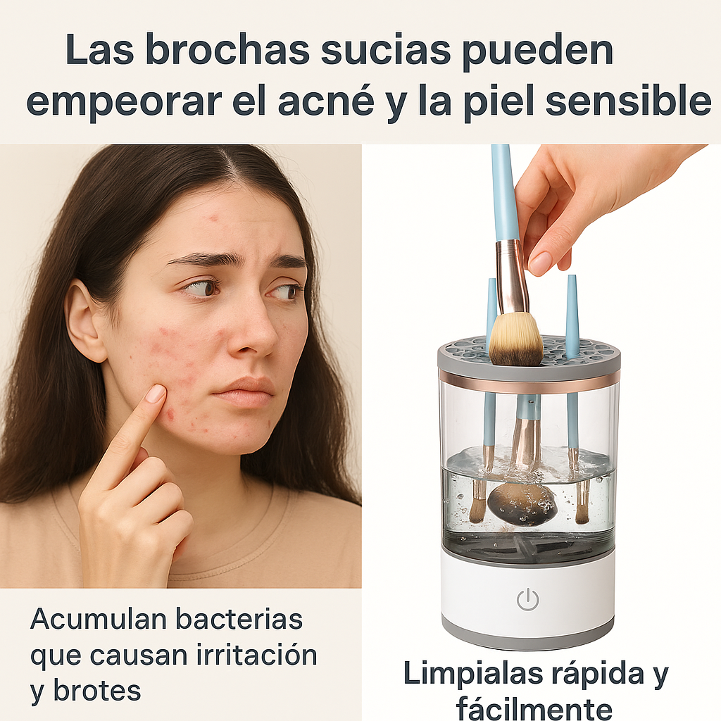 Con nuestro Limpiador de Brochas Eléctrico tendrás brochas limpias e higiénicas en segundos, perfecto para pieles sensibles.
